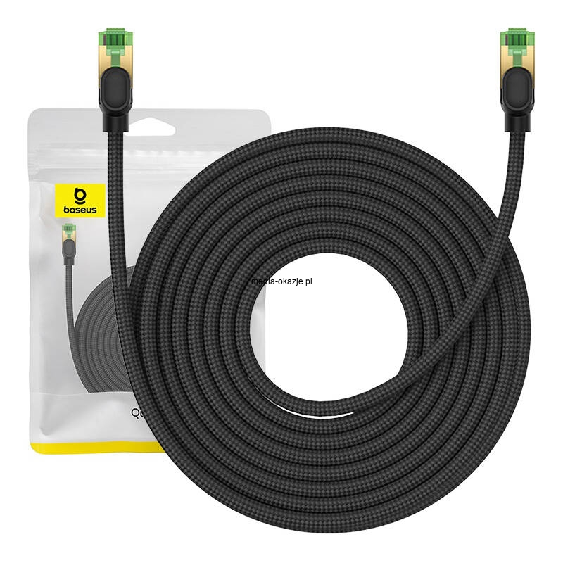 Za pomocą kabla Baseus możesz błyskawicznie przesyłać pliki z prędkością max. 40 Gbps. Co więcej, wzmocniony przewód i zastosowanie czystej miedzi zapewnia stabilną transmisję sygnału bez zakłóceń. Z kolei nylonowy oplot pozwala na dłuższą żywotność produktu i zapobiega plątaniu. Kabel z powodzeniem podłączysz do routera, switcha, modemu lub telewizora.