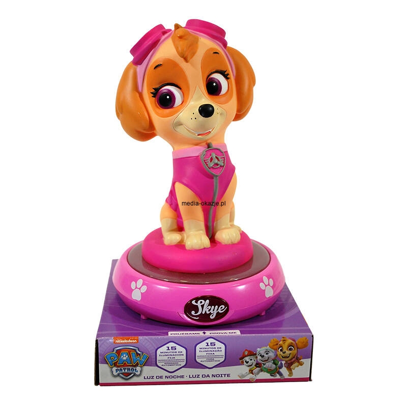 Lampka nocna z figurką Skye marki KiDS Licensing jest niezbędnym elementem wyposażenia pokoju każdego małego fana „Psiego patrolu”. Dzięki funkcji automatycznego wyłączania po upływie 15 minut Twoja pociecha może zasnąć otulona ciepłym oświetleniem LED, a Ty nie musisz martwić się koniecznością wyłączania urządzenia. Produkt mierzy 25 cm i przeznaczony jest dla dzieci, które ukończyły 6 lat, a do jego wykonania wykorzystano wytrzymałe materiały, takie jak PVC, ABS. Aby zasilić lampkę, konieczne są 3 baterie AA (do zakupu oddzielnie).