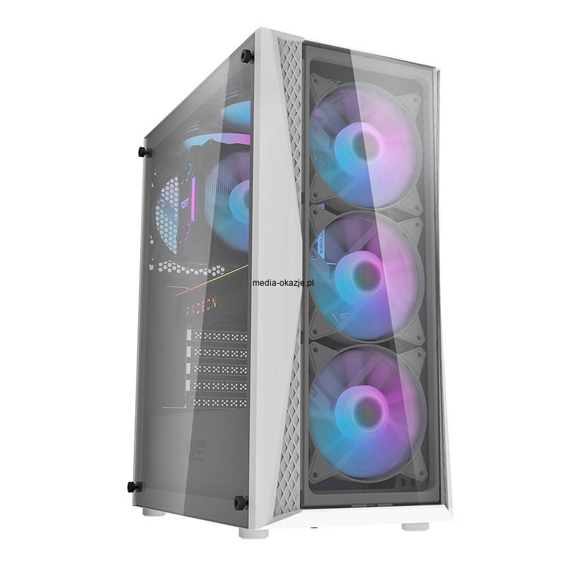 Obudowa została wyposażona w przezroczysty panel boczny ze szkła hartowanego. Dzięki temu będzie idealnie komponować się z podzespołami opartymi na podświetleniu — także z wentylatorami, które znajdziesz w zestawie. Stwórz swoją wymarzoną konfigurację i postaw na funkcjonalność i walory wizualne!